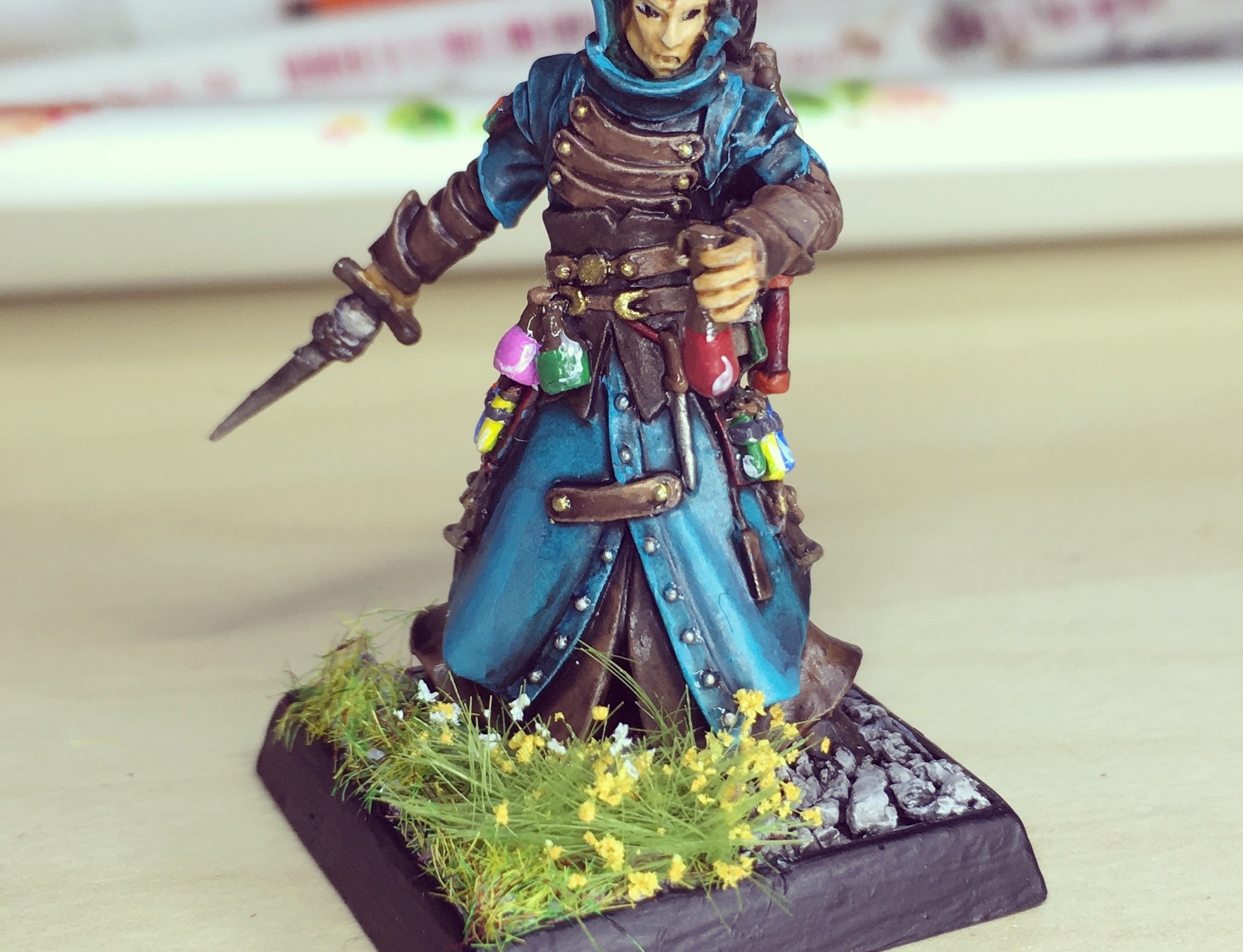 The second mini of my March paint pledge was Damiel. A reaper mini that is an alchemist with lots of flasks and bottles. I thought he would be a ton of fun to paint. Little did I know he would be the most challenging mini so far. I decided to prime in white as I wanted this mini to have a ton of bright colours.